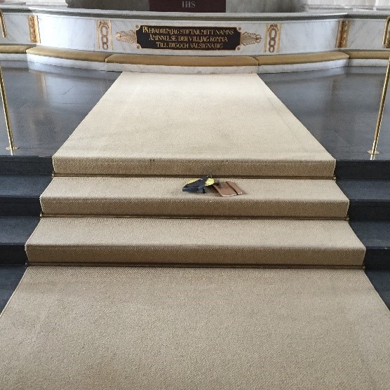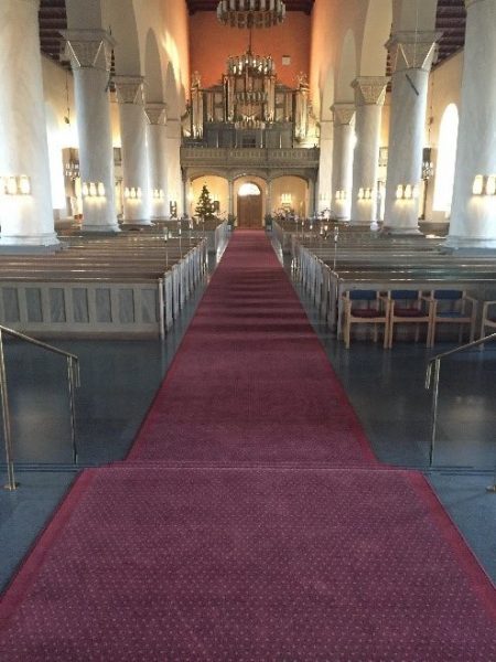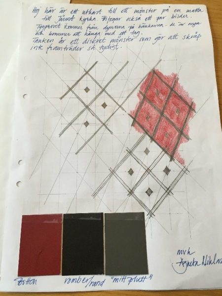 Ny färgsättning för gångmattan i Järvsö kyrka SkisserFärgprover BefintligtIdéskisserProver och färgavstämningNy gångmatta