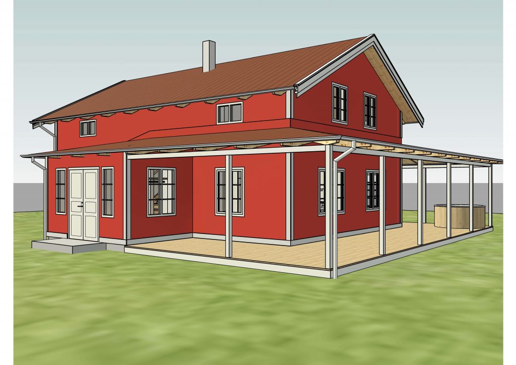 Exempel på 3D-vyer Ombyggnad av flyttad timmerstomme. Ombyggnad av flyttad timmerstomme. Nybyggnad av fritidshus.
